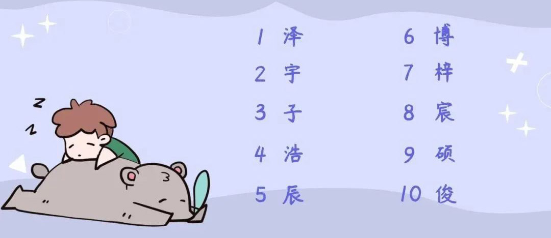 新建新生男宝名字常用字TOP10(数据来自网络仅供参考)